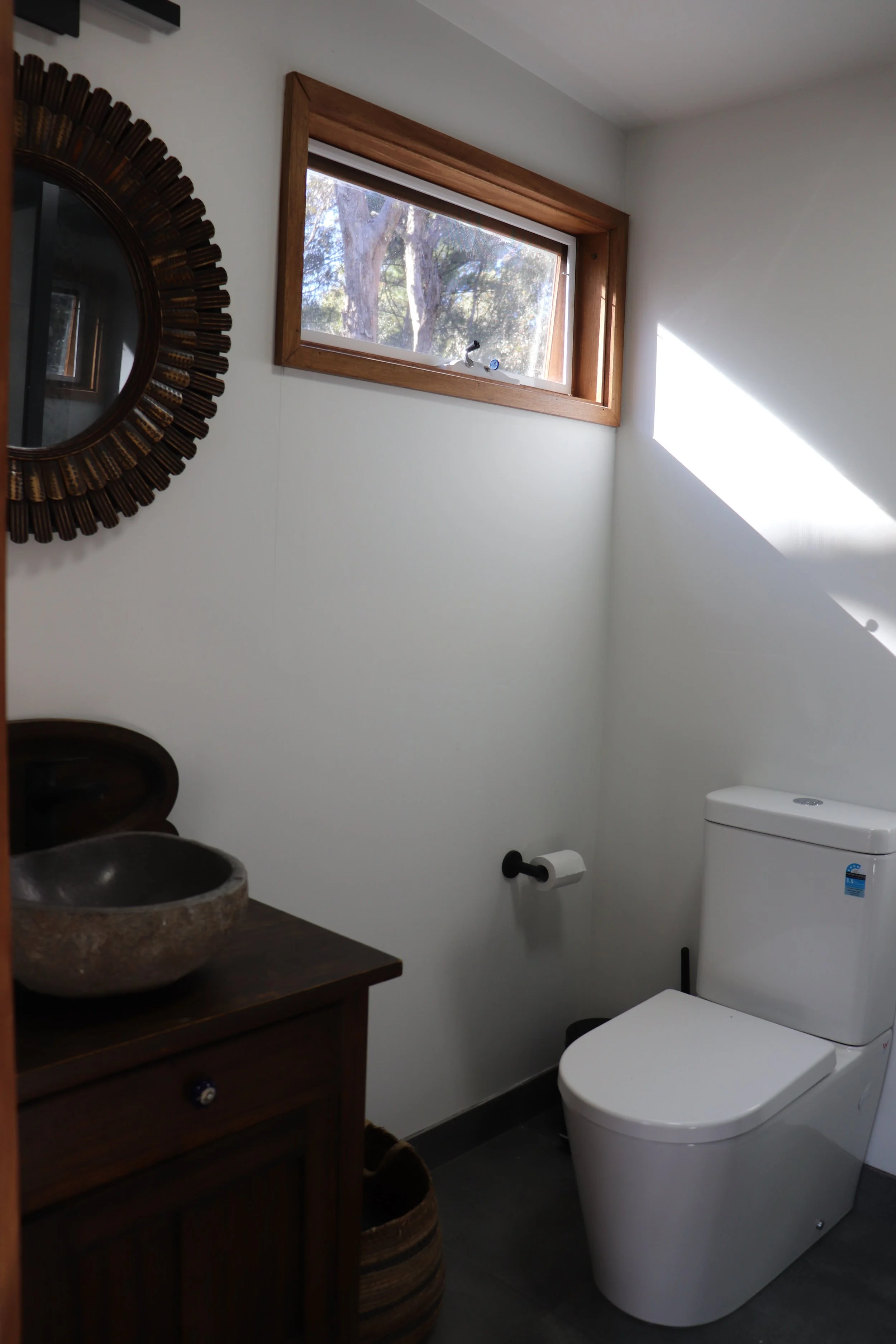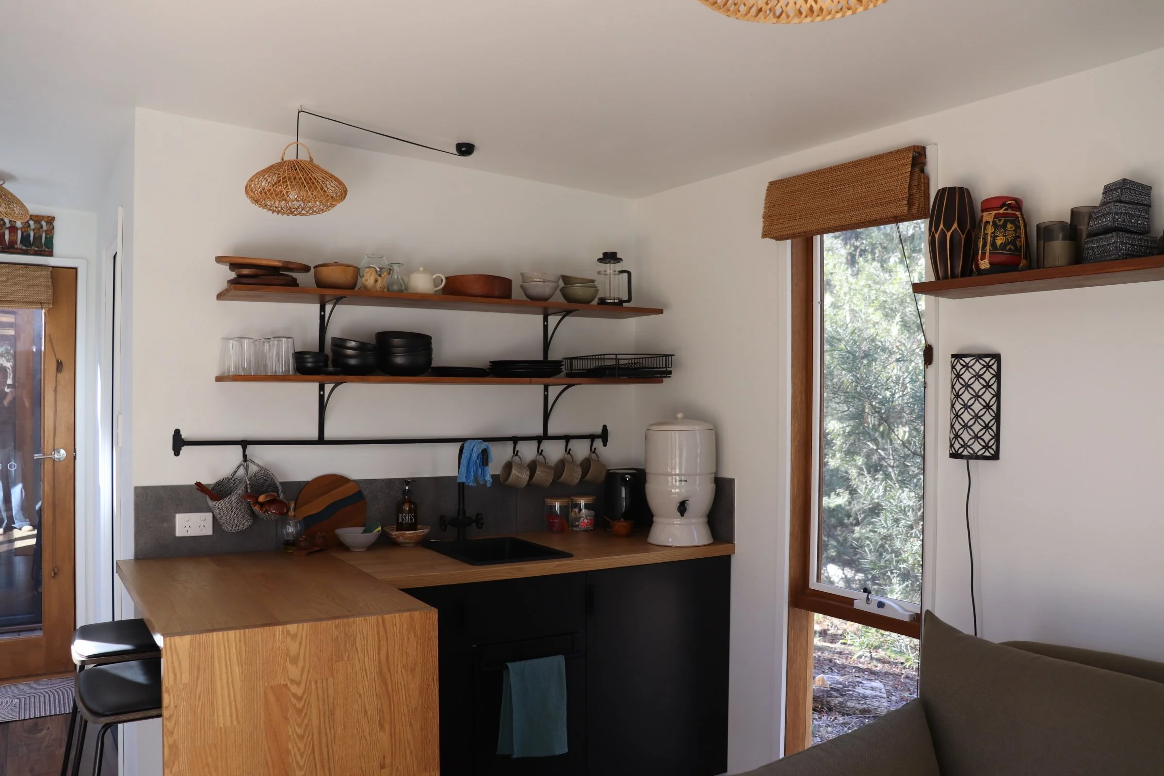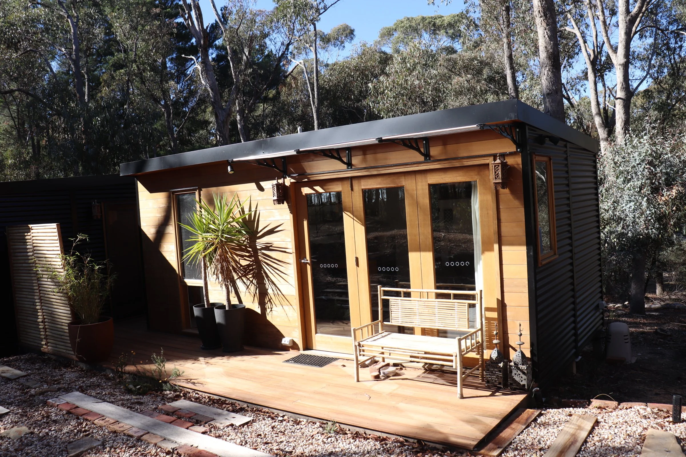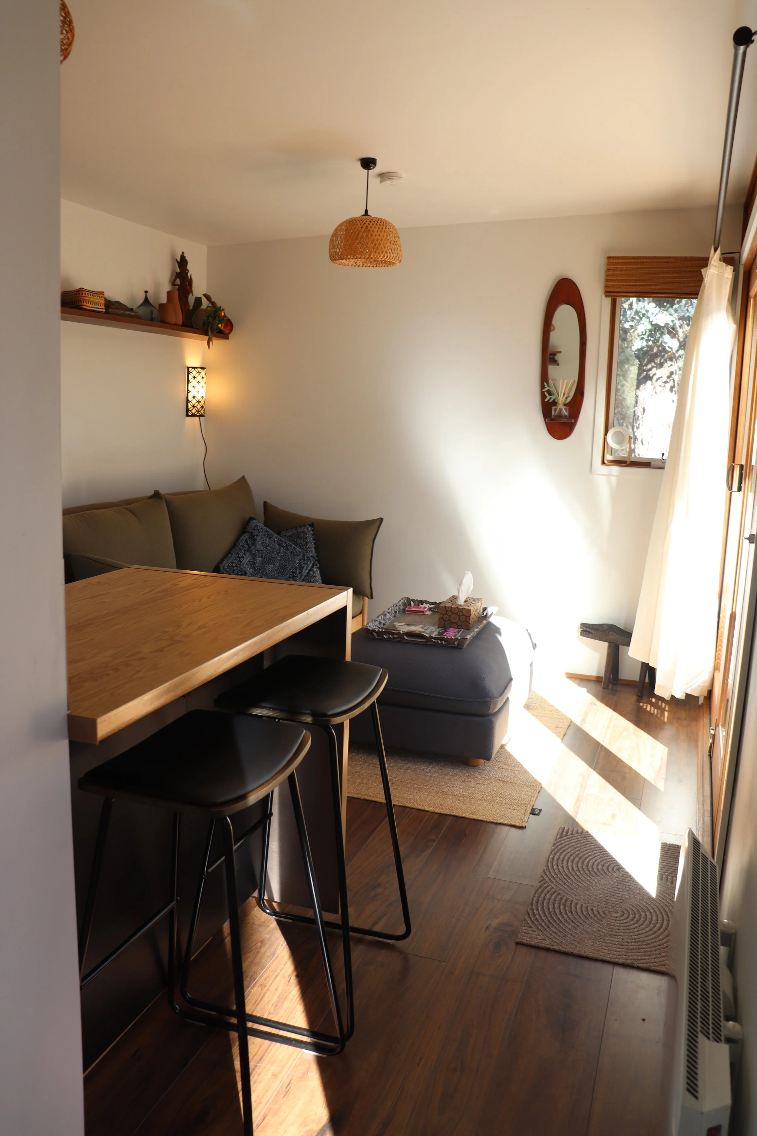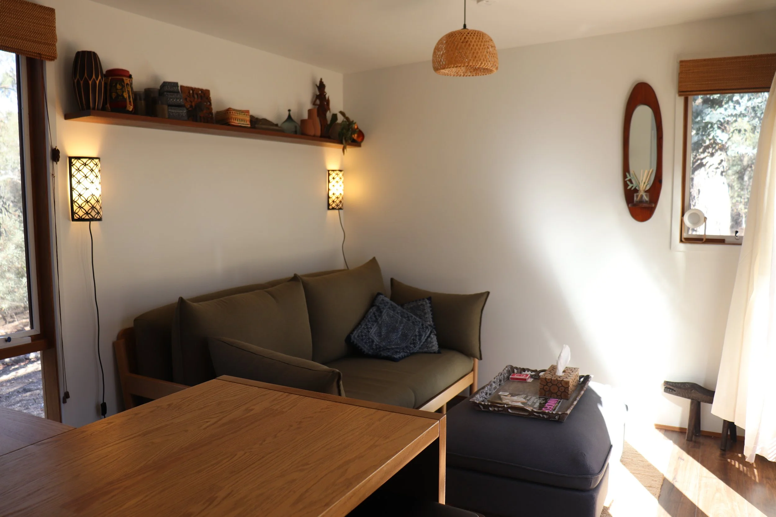 Nestled in the tranquil bushland of Hepburn, our thoughtfully designed small home (not a small as a tiny home but not as big as home… a small home) is a peaceful sanctuary created with deep care for both personal wellbeing and the natural world. Built using as many natural materials as we could and guided by low-tox principles, this intimate retreat offers a restorative escape that feels grounded, nourishing and beautifully simple.